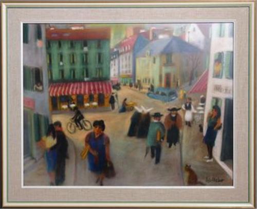 GÖSTA BJELKEBO, PASTELL, PARISMOTIV MED FIGURER, SIGN. 50X63