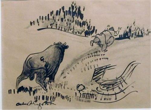 ALBERT ENGSTRÖM 1869-1940, TUSCH, TJUR JAGANDE KVINNA, SIGN. 22X31
