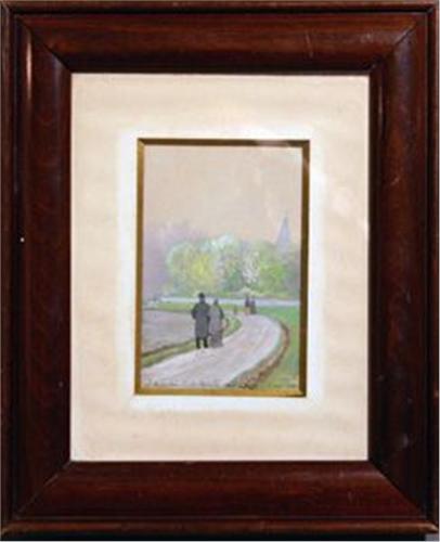 AUGUST MALMSTRÖM 1829-1901, AKVARELL, PROMENERANDE PAR I PARK, SIGN. -93, 17X11