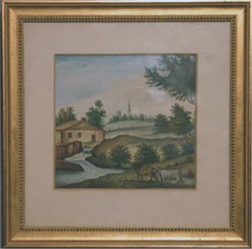 OKÄND KONSTNÄR, AKVARELL, TJURAR VID VATTENFALL, SEMEMPIR C. 1850, 11X13