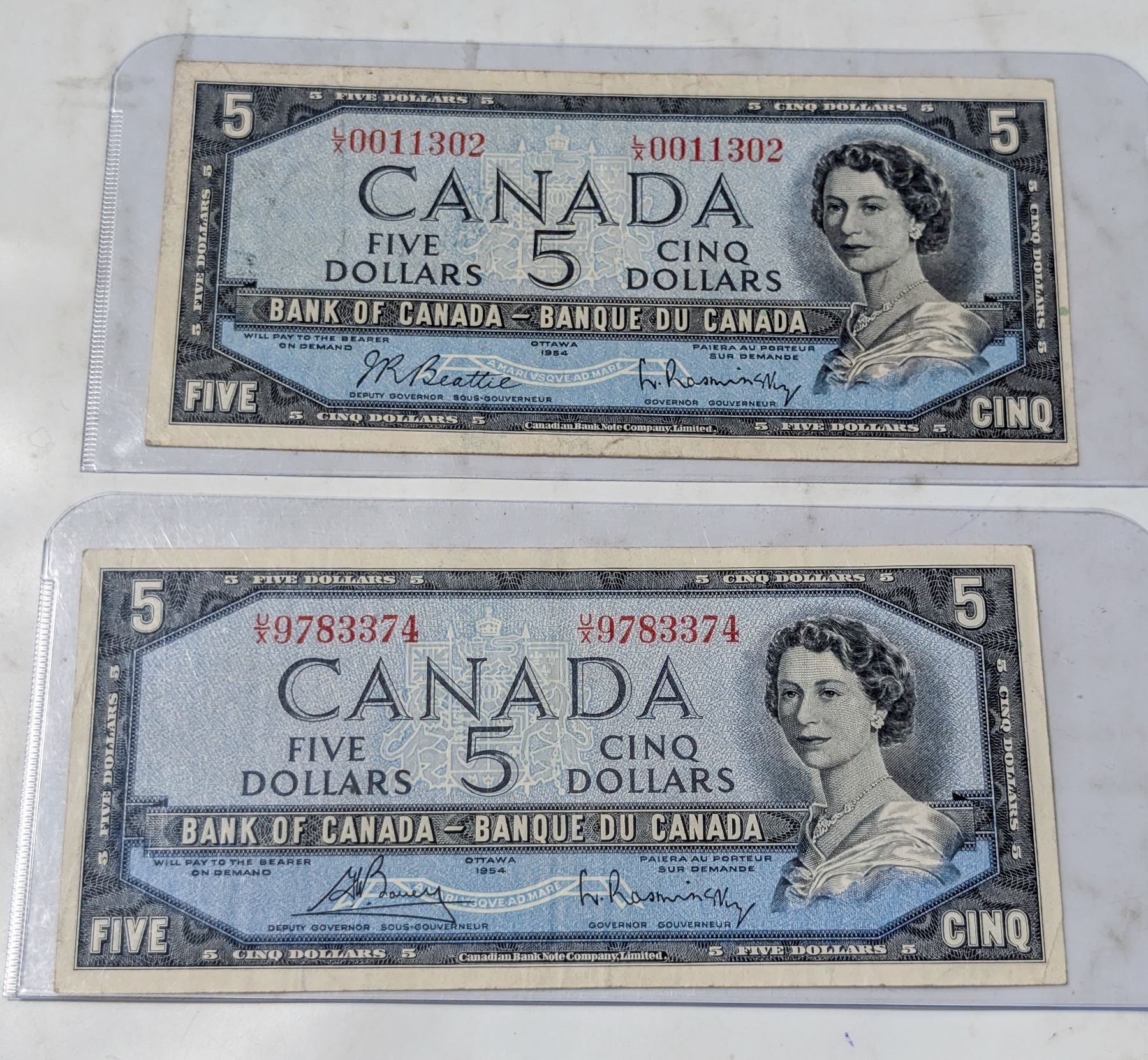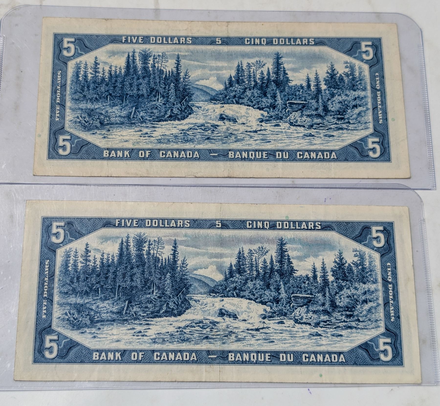 PAIR 1954 CANADA $5 BANKNOTES MP