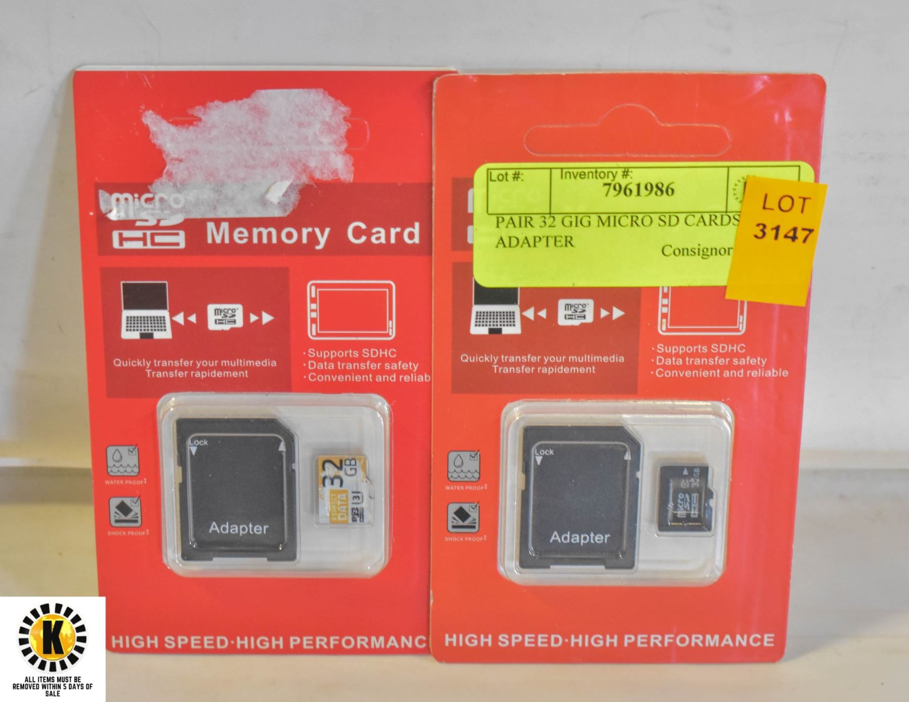 PAIR 32 GIG MICRO SD CARDS WITH ADAPTER