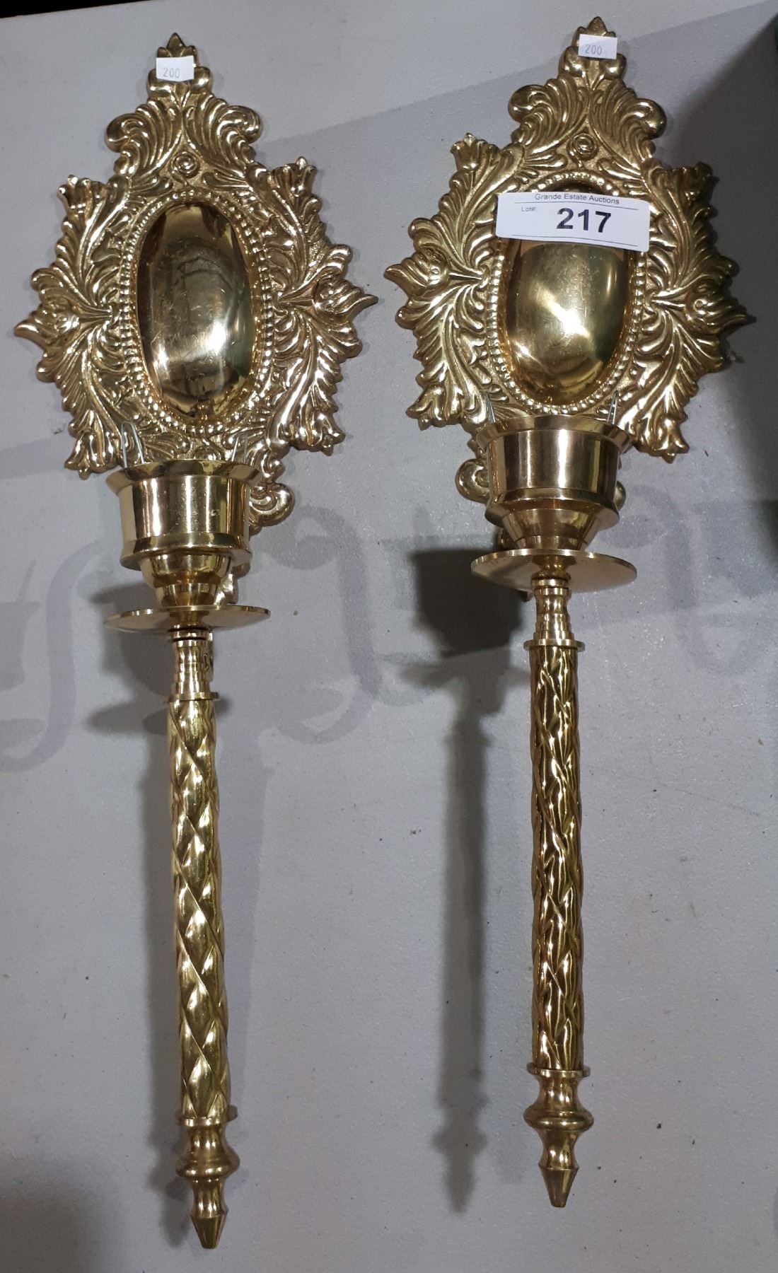 PAIR BRASS CANDLE WALL SCONCES