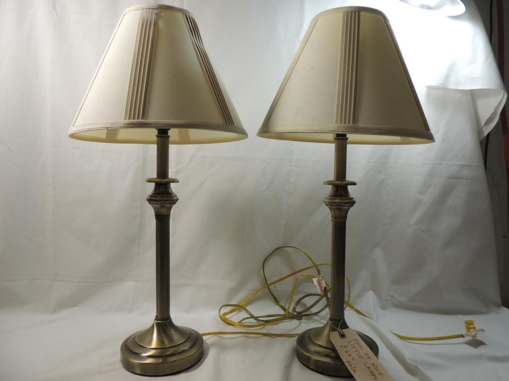 MATCHING NICE LITTLE LAMPS WITH OFF WHITE SHADES. MATCHING DESK TABLE LAMPS. AS SHOWN. SEE PHOTO FOR MORE DETAILS.