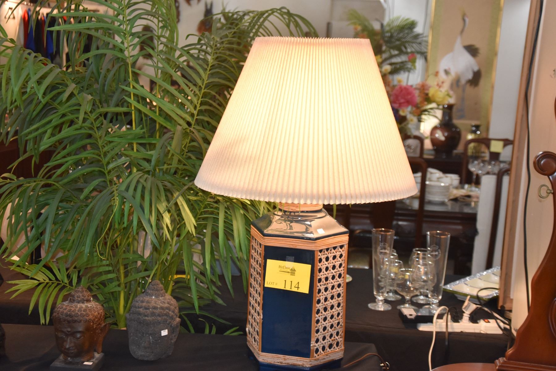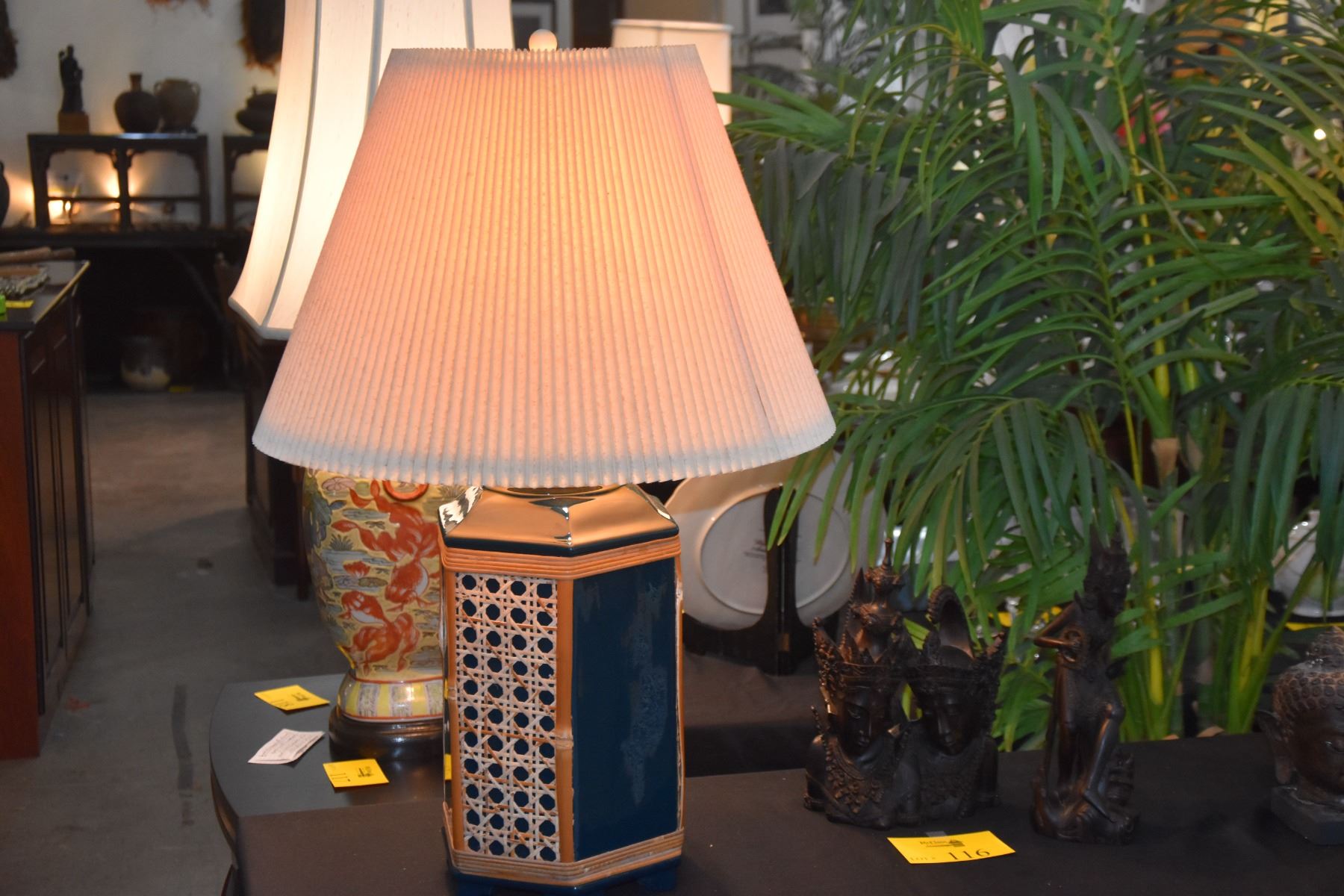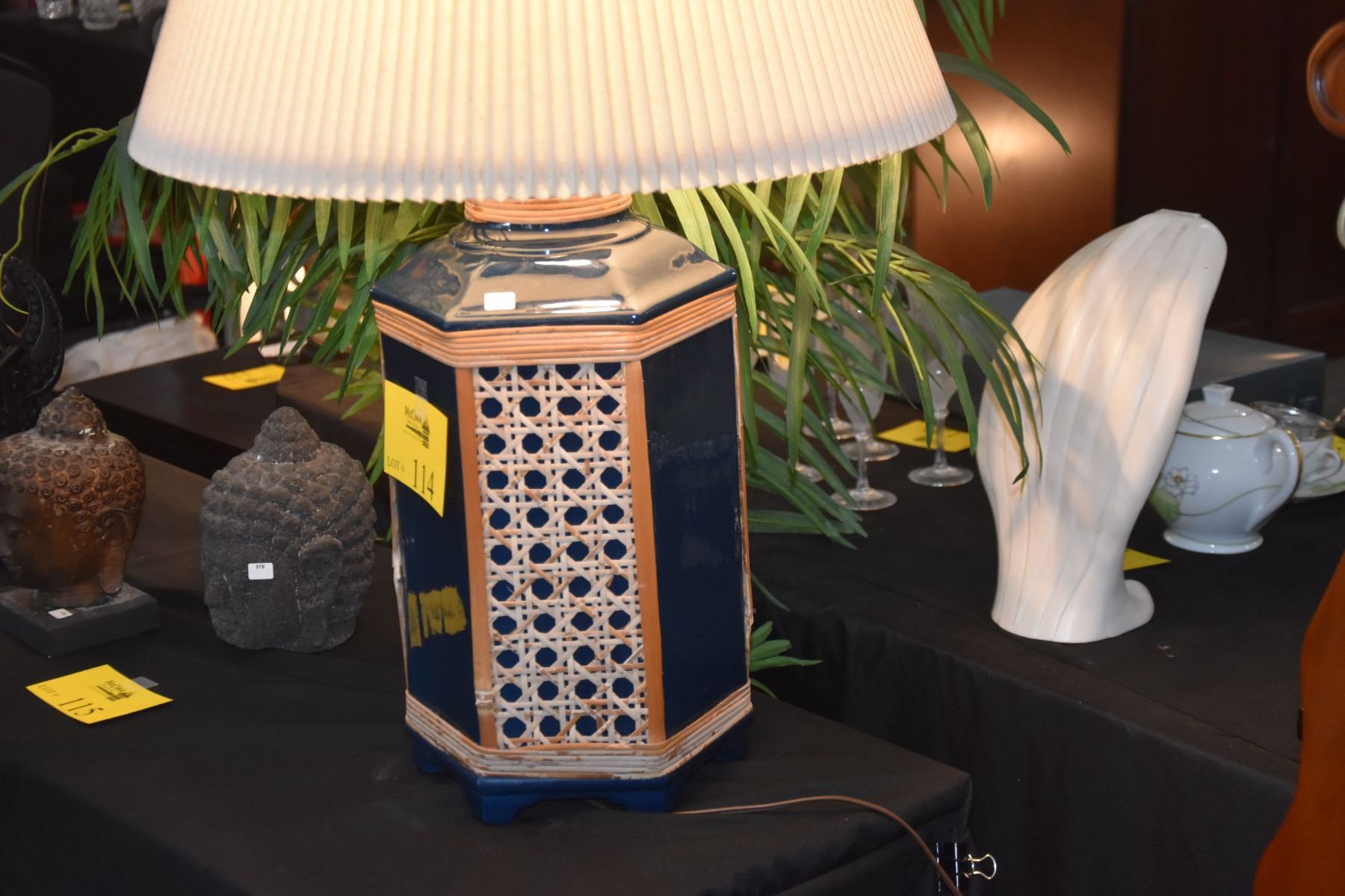 PAIR CERAMIC TABLE LAMPS W/CANE OVERLAY (PAIR)