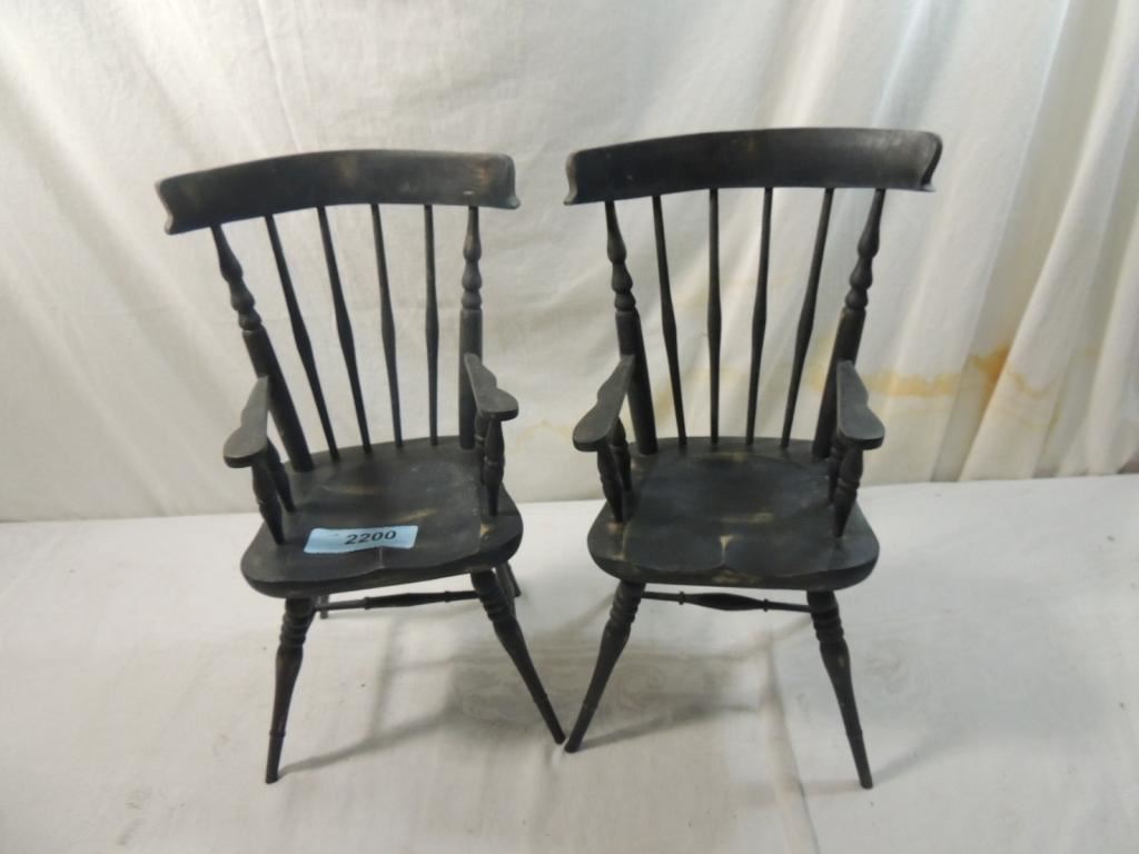 PAIR COLONIAL WOODEN DOLL CHAIRS