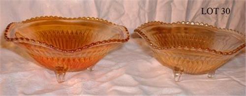 BEADED RIMS, ON TRIPLE FEET, "DIAMOND POINT" - 2 ½" H x 6 1/2" DIA, WEIGHING 1.2 LBS.