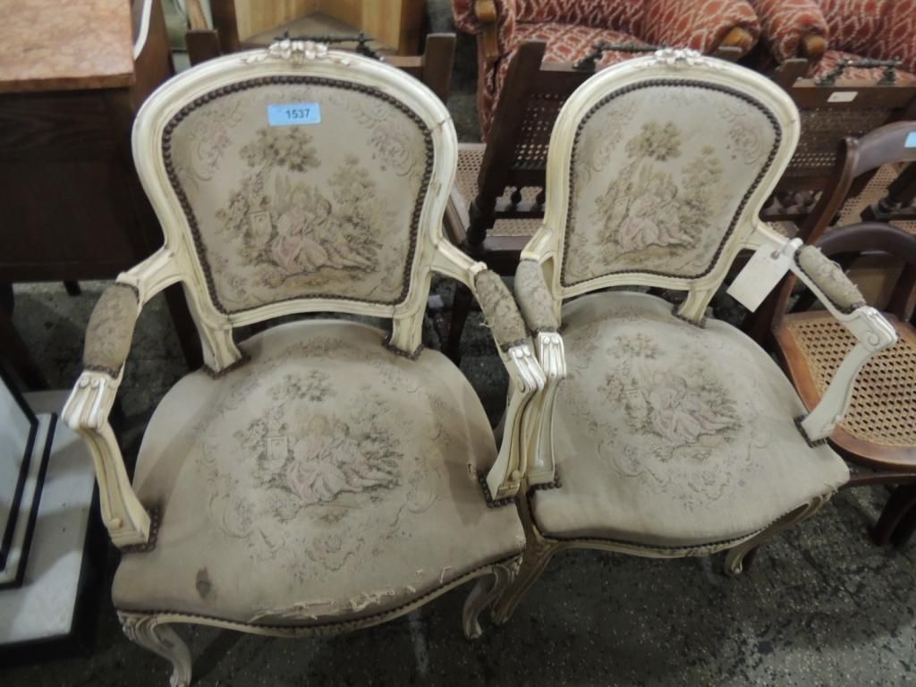 PAIR FRENCH BERGERE CHAIRS UPHOLSTERED. AS SHOWN SEE PHOTO FOR MORE DETAILS.
