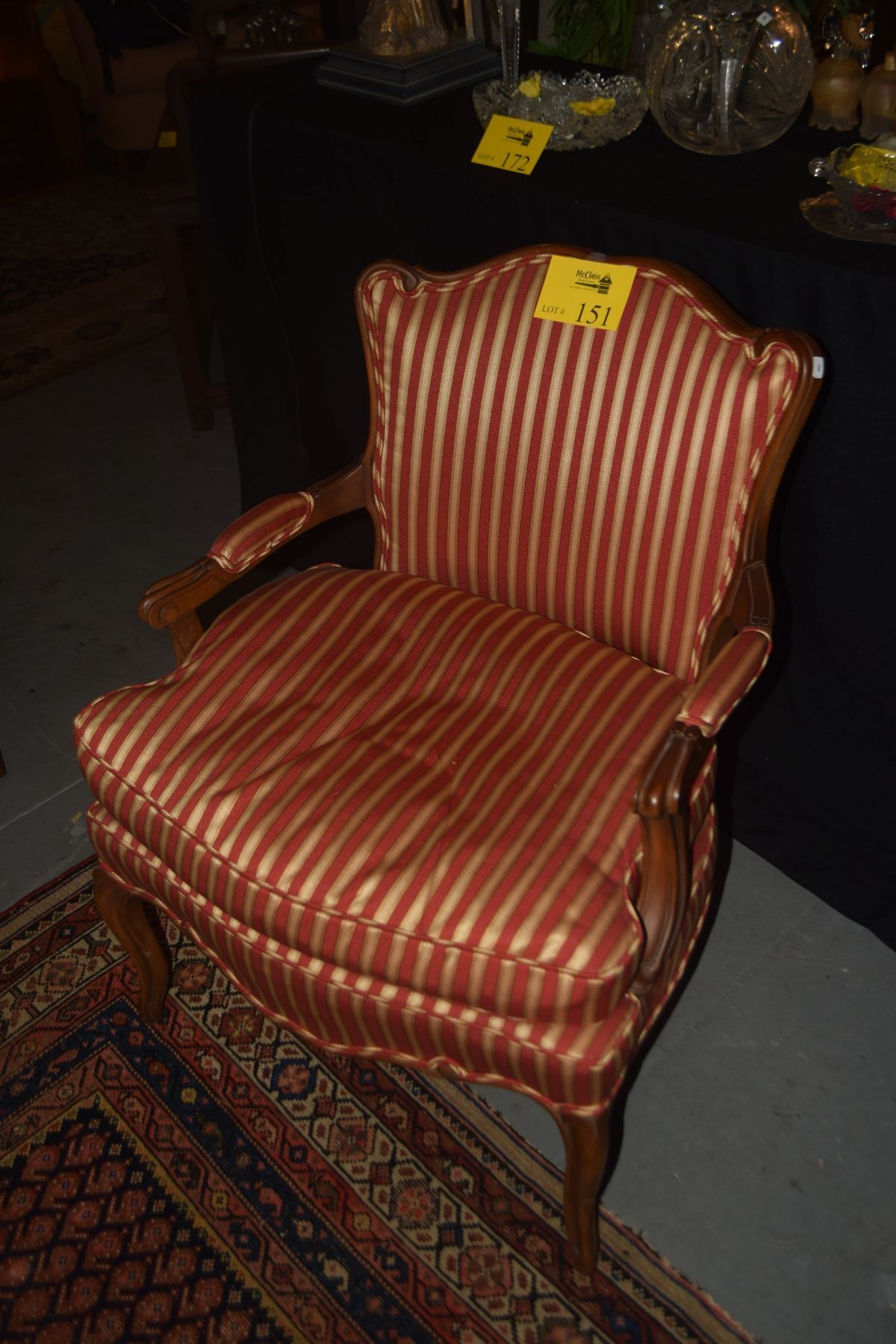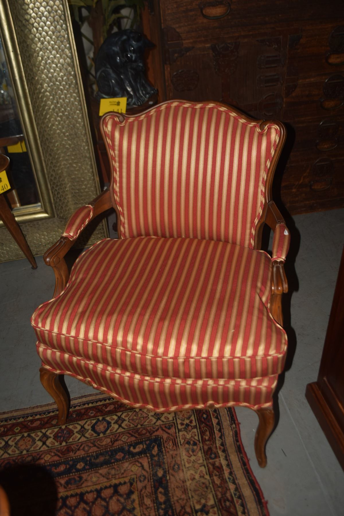 PAIR FRENCH STYLE UPHOLSTERED ARM CHAIRS