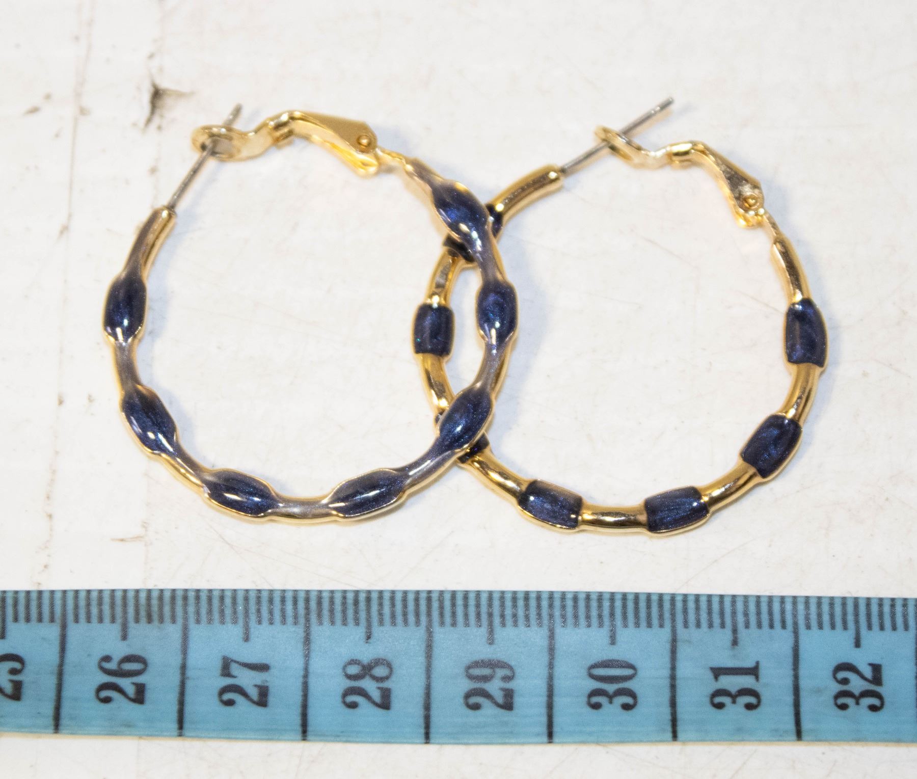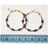 PAIR GOLD TONE ENAMEL HOOP EARRINGS