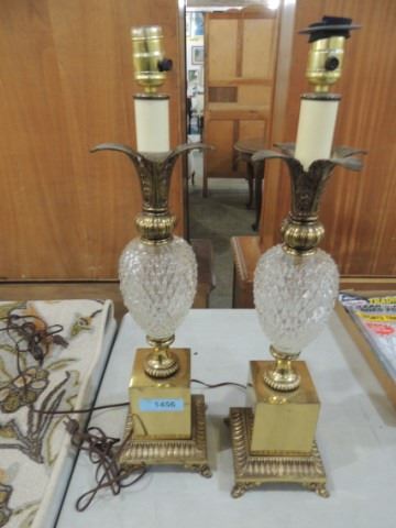 PAIR HEAVY BRASS PINEAPPLE THEME TABLE LAMPS NICE!