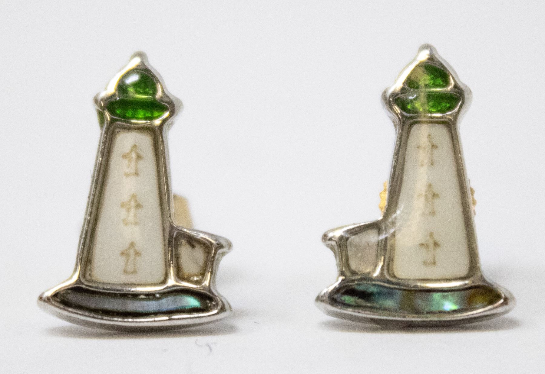PAIR INLAID LIGHTHOUSE EARRINGS