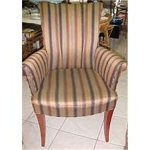 Super pair of 1960's "Mid Century" armchairs covered in a multi colored earth tone striped silk. These chairs can be used alone or paired with a set of dining side chairs and used at the head of the tble. A wonderful addition in any location!