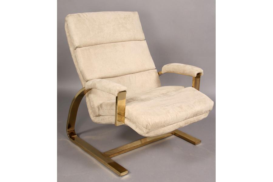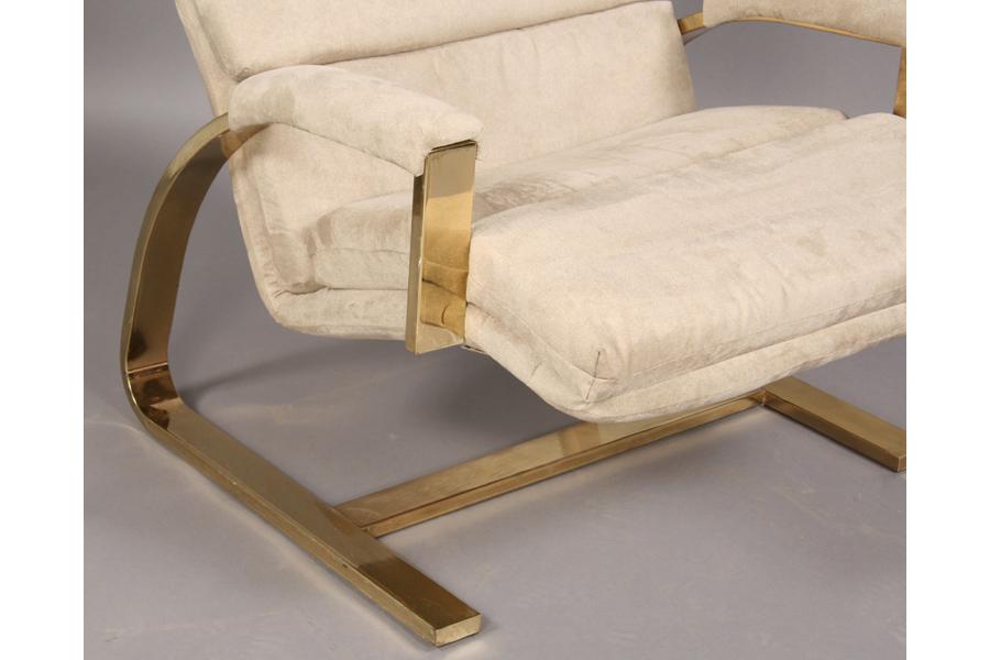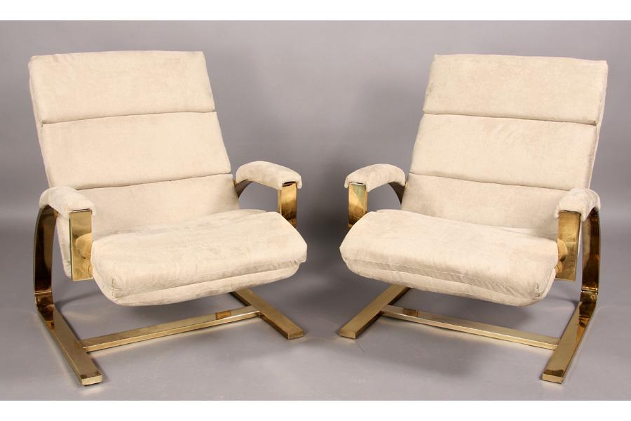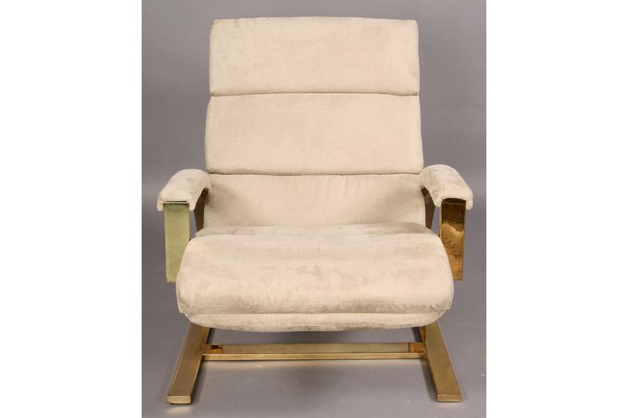 Pair of mid century modern brass lounge chairs with ultra suede upholstery and stylish frames circa 1970. Ht: 34" Width: 25" Depth: 32" ***PLEASE NOTE: All property shall be paid for by the purchaser within five (5) business days of the sale. Kamelot Auctions accepts cash (In house only), personal checks, certified checks and money orders. We do not accept credit cards or Paypal under any circumstances. Please note our policy regarding payments from International buyers: The only acceptable method of payment is a bank wire/bank transfer. For invoices more than $1000, there is no additional fee for this service. For invoices less than $1000, please include an additional $25 wire fee. We will be happy to forward our bank wiring information after the completion of the auction. Thank you for your understanding and cooperation. All purchases must be removed within 15 business days after an auction. Property not removed from our facility after 15 business days will be moved to an off-site storage facility at a charge of $10.00 per day payable by the buyer. Kamelot does NOT provide shipping services or estimates. However, we recommend the following independent shipping services: Antique Transport Co. at antiquetransport@cs.com, Farren Transport at farrentransport@comcast.net or All Points Shipping at jb@allpointsshippingnj.com for quotations and shipping arrangements for furniture and other large items that would require a blanket wrap shipping company. For quotations and shipping arrangements for smaller items that would traditionally be shipped through UPS, please contact The UPS Store at store4744@theupsstore.com or The Packaging Store at hrpa112@aol.com. Clients are welcome to pick up their items from our location or make their own shipping arrangements.