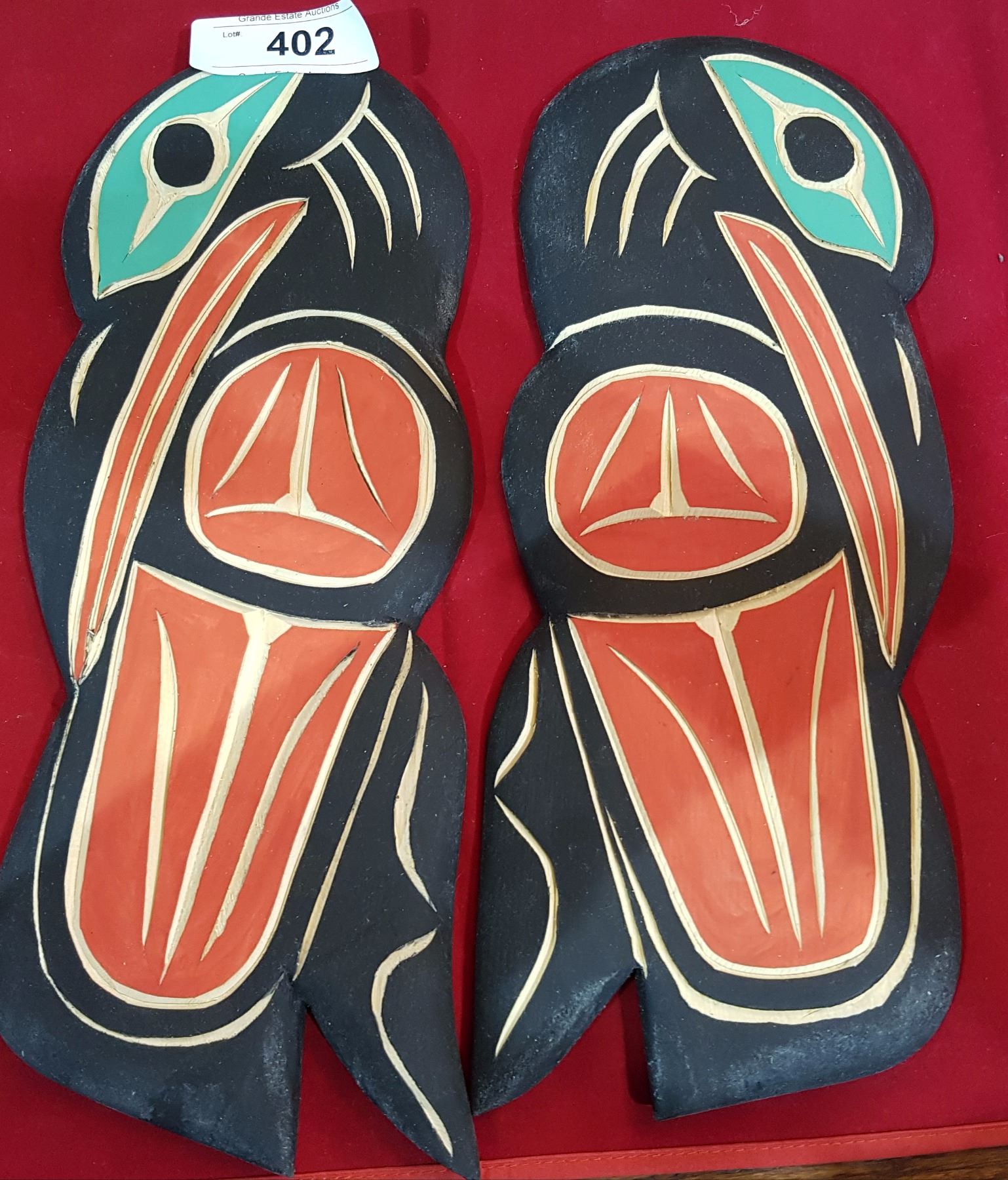PAIR NATIVE CARVED RAVENS SIGNED LAWRENCE ANDREW