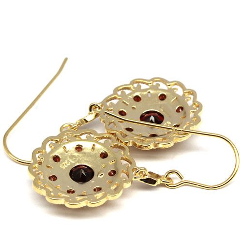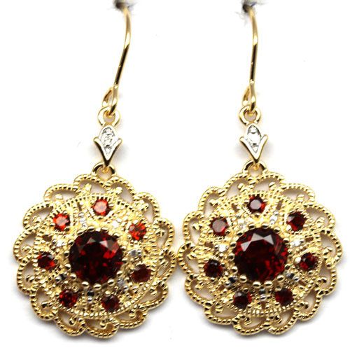 PAIR OF 14K GOLD OVER STERLING SILVER RED GARNET& DIAMOND EARRINGS