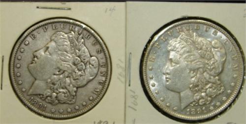 PAIR OF 1891 U.S. MORGAN SILVER DOLLARS.