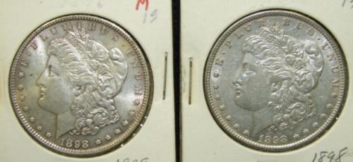 PAIR OF 1898 U.S. MORGAN SILVER DOLLARS.
