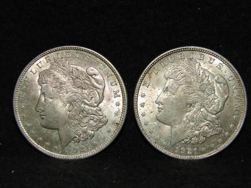 PAIR OF 1921 U.S. MORGAN SILVER DOLLARS.