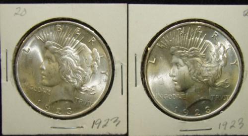 PAIR OF 1923 U.S. PEACE DOLLARS.