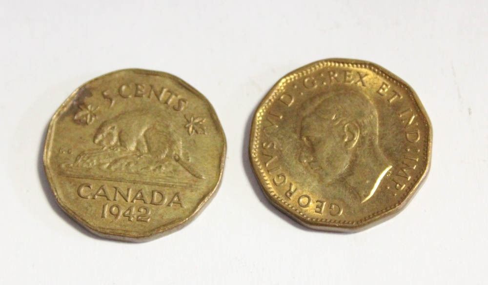PAIR OF 1942 & 1943 CANADA WWII TOMBAC NICKELS