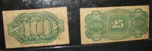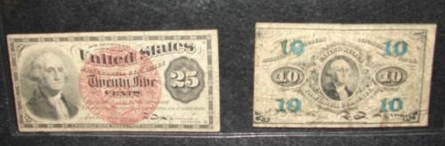 PAIR OF 19TH CENTURY FRACTIONAL CURRENCY NOTES. Consists of one 25¢ Fractional Currency Note and one 10¢ Fractional Currency Note. Both notes depict George Washington.
