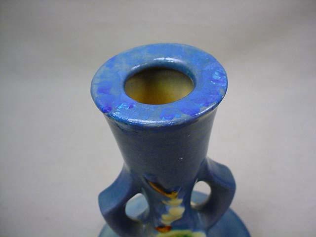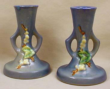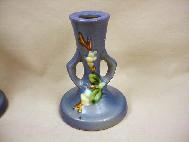 PAIR OF 2 ROSEVILLE BLUE SNOWBERRY CANBERRY CANDLE HOLDERS - 1CS2 - The Tops look like they have poss. been Repainted