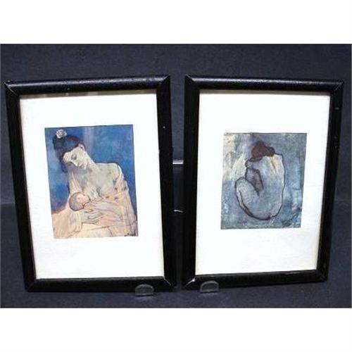 HERE IS PAIR OF SMALL PICASSO PRINTS, FRAMED IN SIMPLE BLACK WOODEN FRAMES, WITH GLASS, LOVE THE MOTHER WITH CHILD,each measures about 7 1/2" X 5 3/4", excellent condition, NO TEARS OR HOLES OR STAINS,US BUYER TO PAY 9.00 FOR SHIPPING PLUS INSURANCE.THANKS.