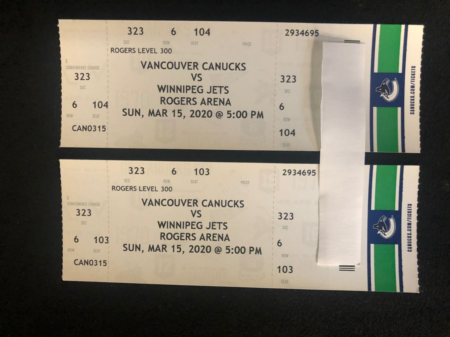 SECTION 323 ROW 6 SEATS 103 & 104