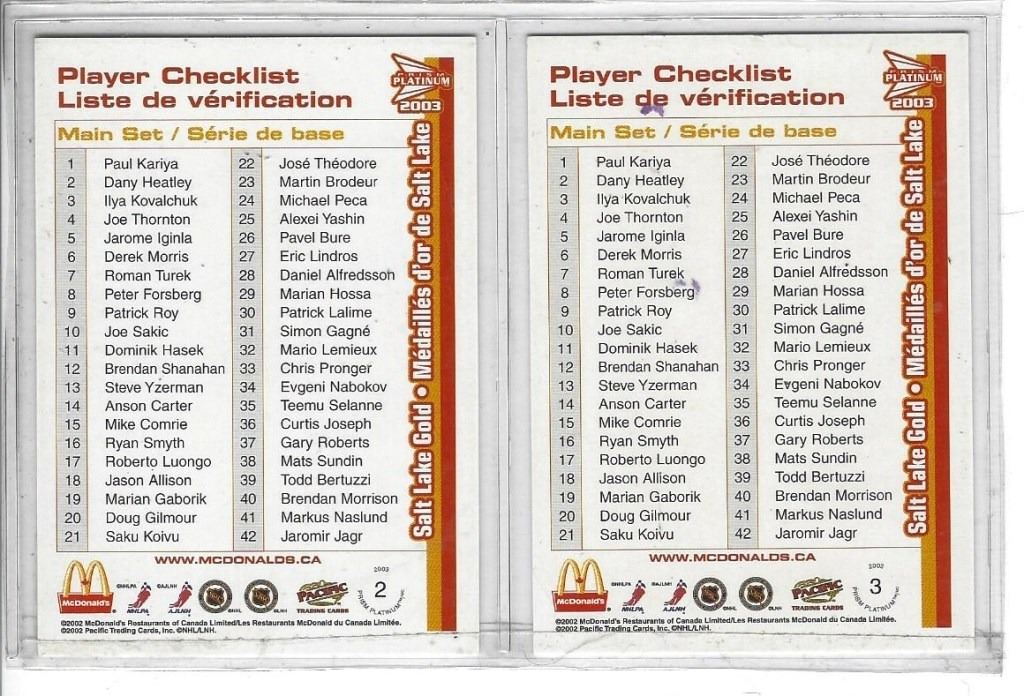 PAIR OF 2002 MACDONALDS PLAYER CHECK LISTS #2 & #3 (803)