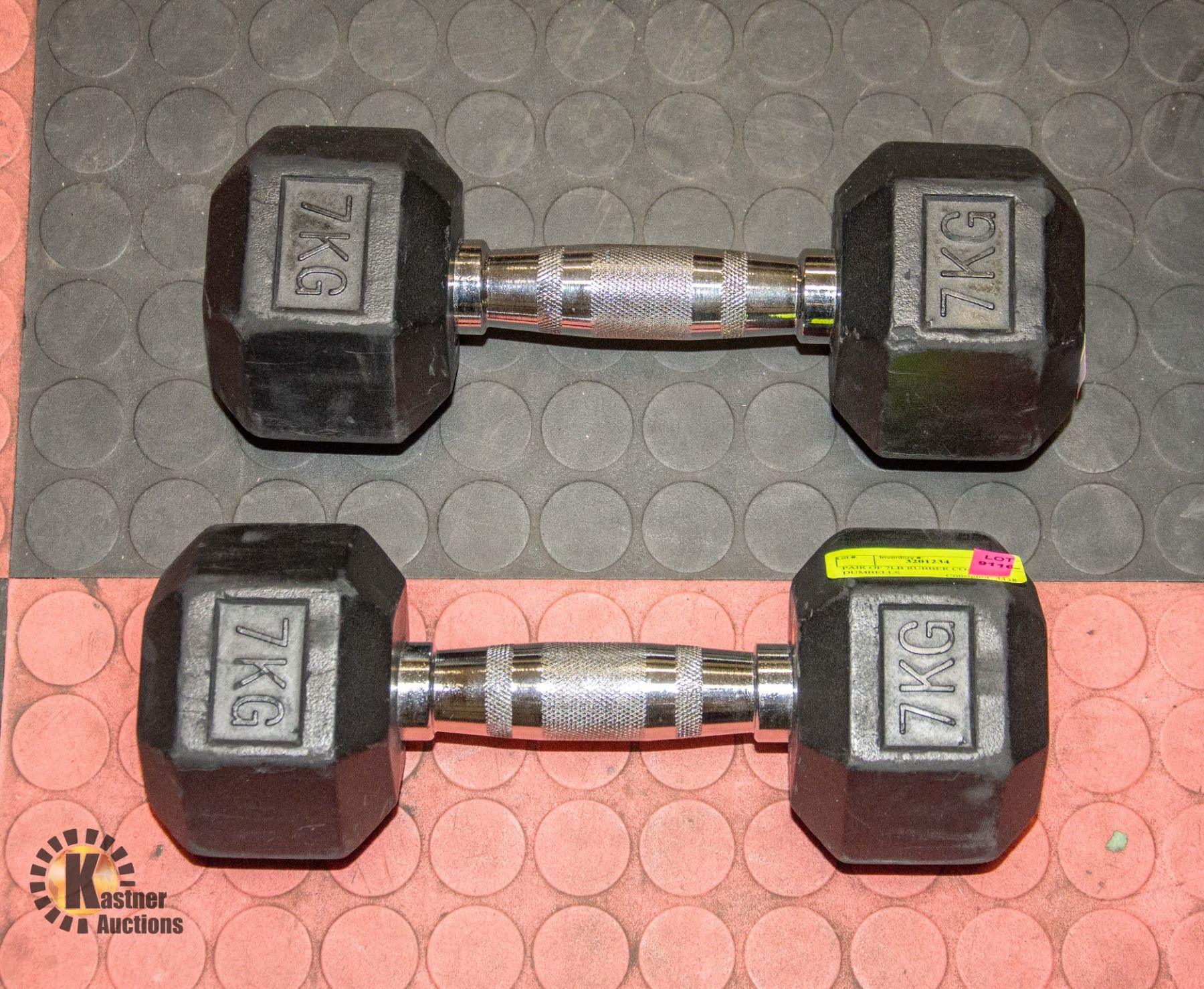 PAIR OF 7KG RUBBER COATED DUMBELLS