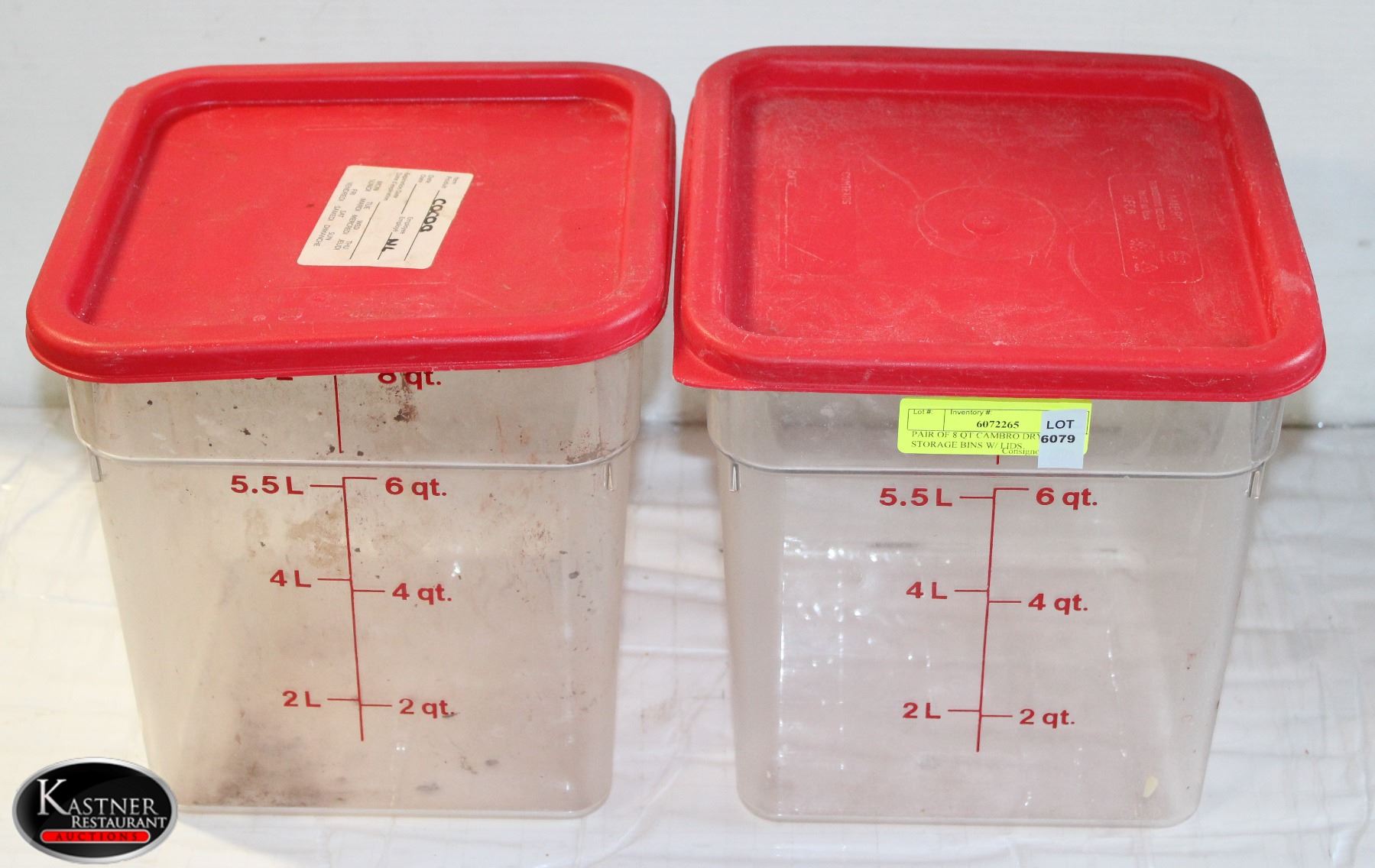 PAIR OF 8 QT CAMBRO DRY STORAGE BINS W/ LIDS