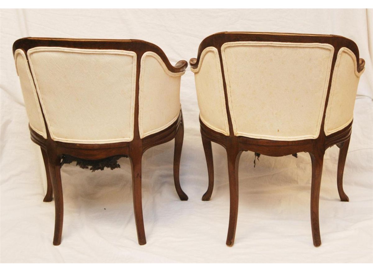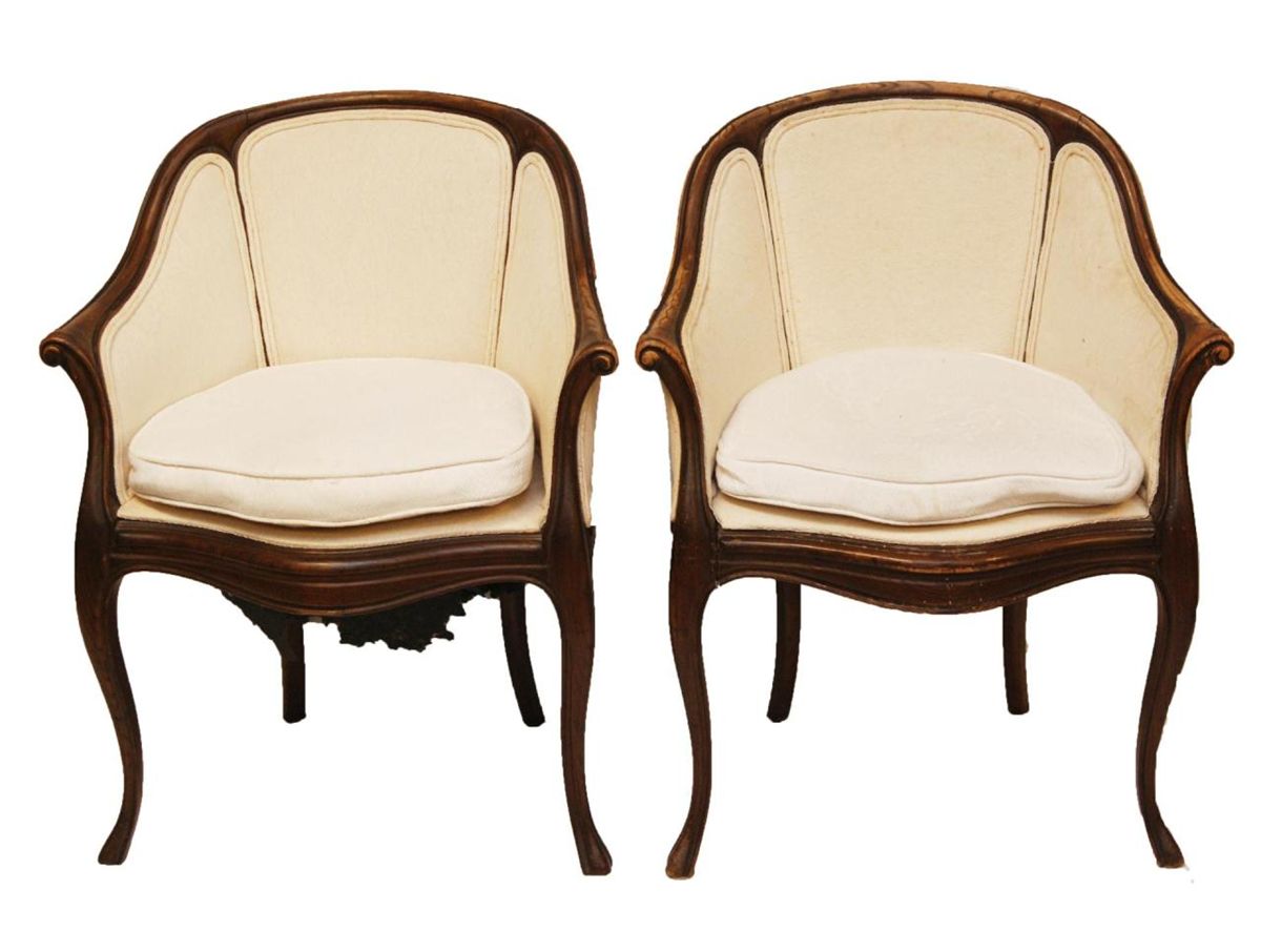 Pair of antique upholstered chairs. 19th century. 24" height x 27" width x 22" depth (60.9cm x 68.5cm x 55.8cm).