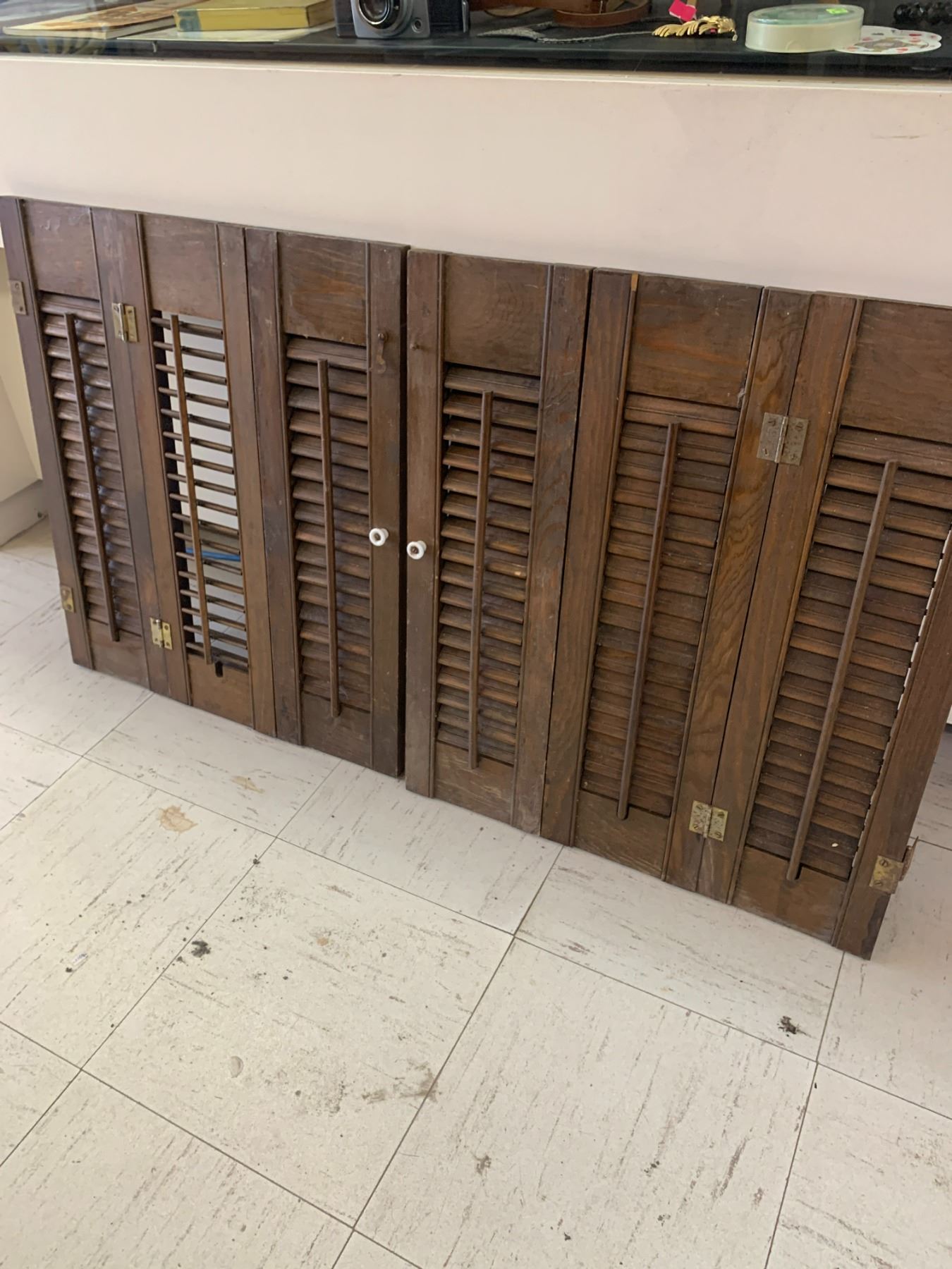 PAIR OF ANTIQUE WINDOW SHUTTERS EACH ONE MEASURES 21" x 24"