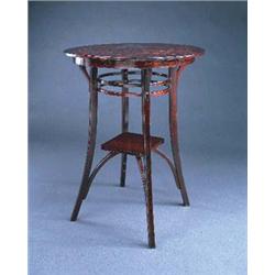 PAIR OF AUSTRIAN STAINED BENTWOOD OCCASIONAL TABLES CA. 1910 manufactured by Thonet, both with remnants of Thonet paper label (2) the larger table 303/4 in. (78.1 cm) high 273/8 in. (69.5 cm) diameter Estimate: $1,200-1,600