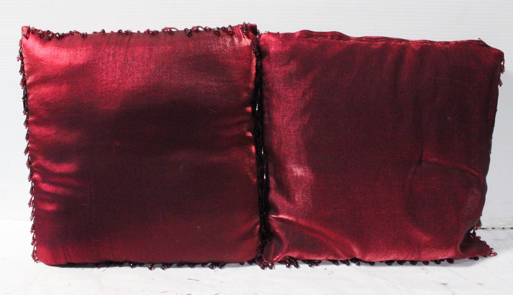 PAIR OF BEADED BURGUNDY PILLOWS W/REMOVABLE CASES