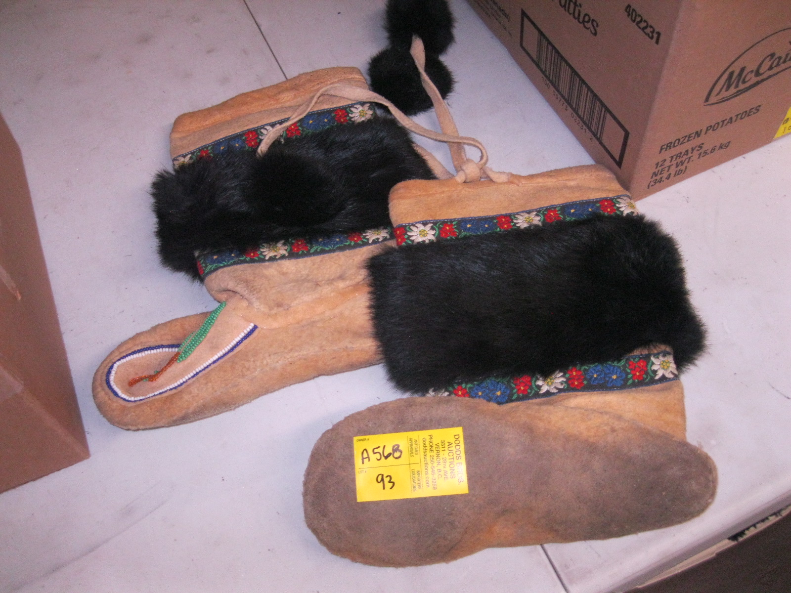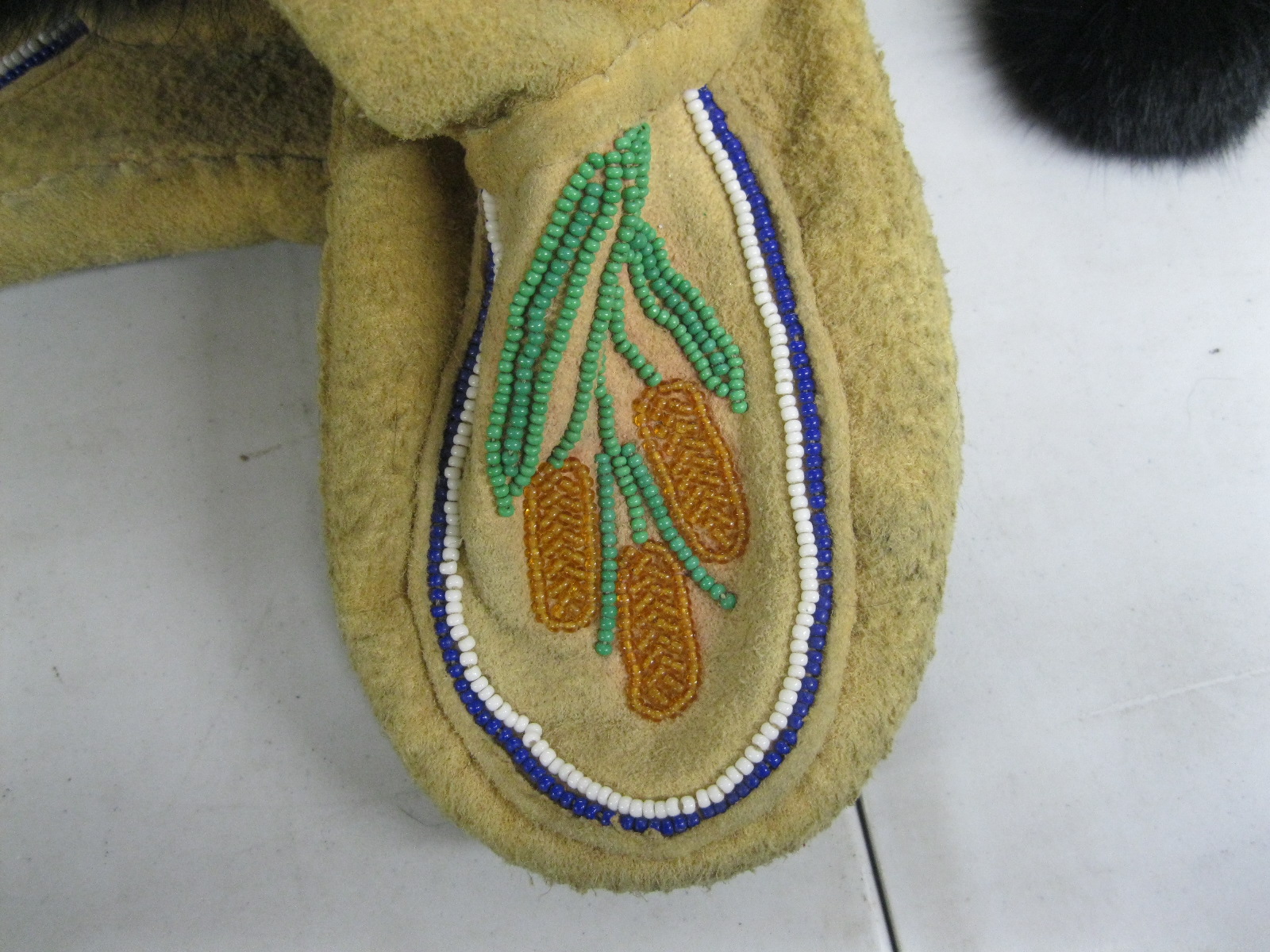 PAIR OF BEADED & FUR MOCCASINS