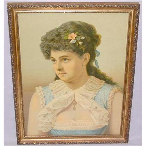 A PAIR OF BEAUTIFUL VICTORIAN CHROMOLITHOGRAPHS... featuring two lovely women. The lithographs are framed in their original gold gilt GESSO frames. The lithographs are in very good condition. The frames are also very good, but one is missing a bit of gilt.