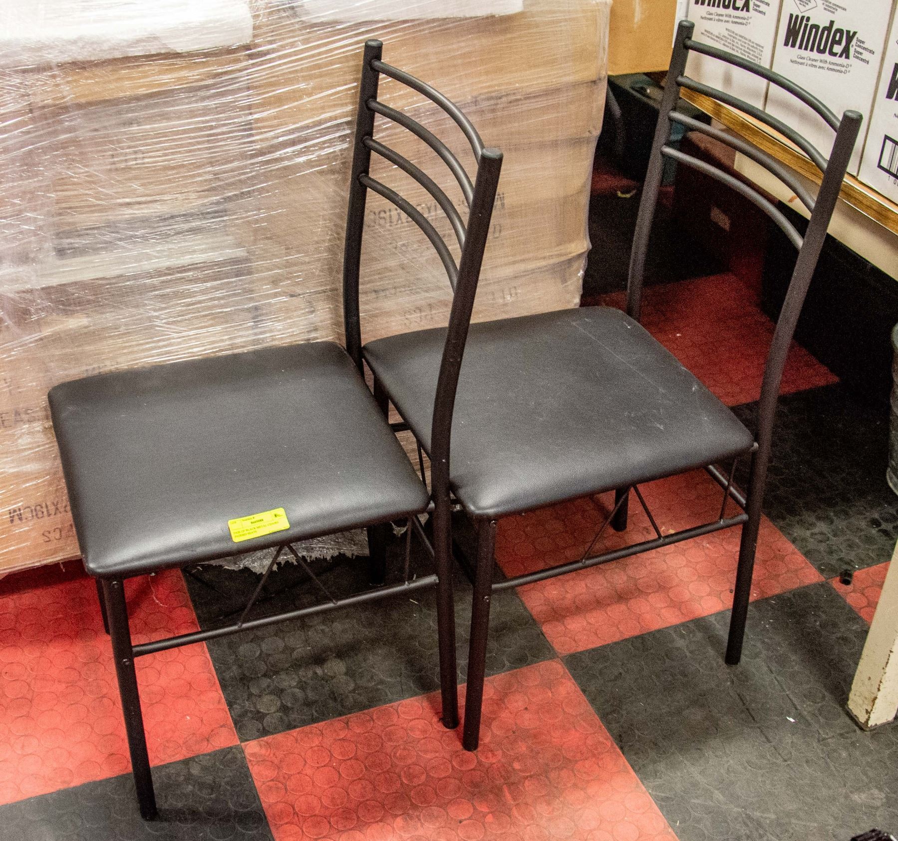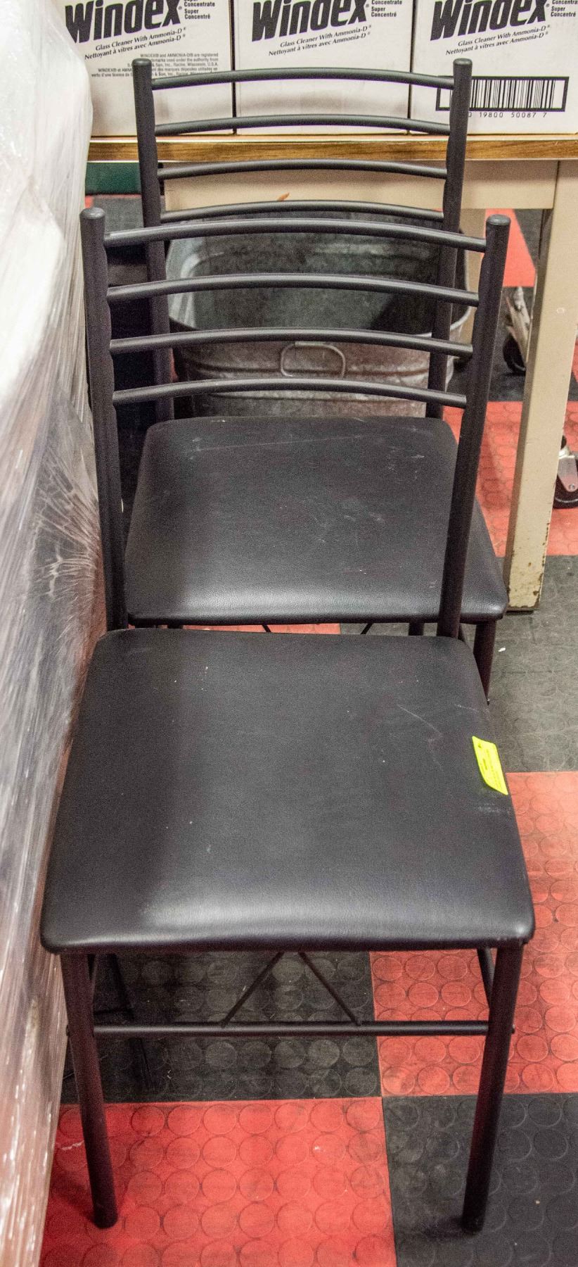 PAIR OF BLACK METAL CHAIRS PADDED SEATS