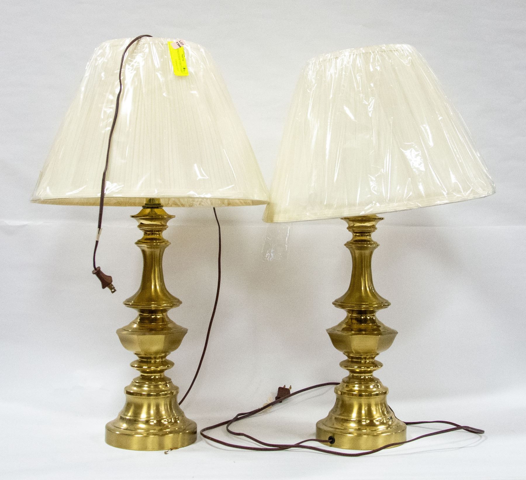 PAIR OF BRASS BASE TABLE LAMPS H-27"