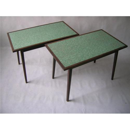 PAIR OF VINTAGE SIDE TABLES, 1950', BRAZILIAN HARDWOOD ( EMBUIA) WITH GREEN NACKERED FORMICA TOPS.