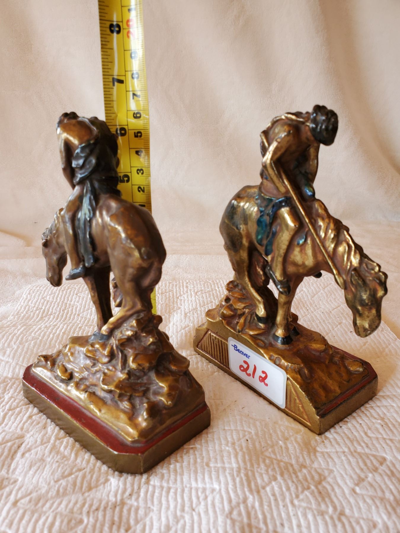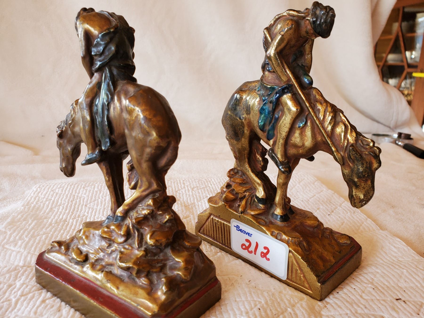 PAIR OF BRONZE ARMOR 'END OF THE TRAIL' BOOK ENDS