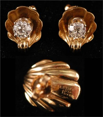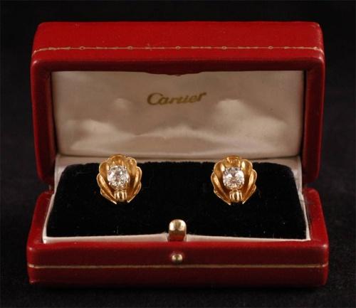 PAIR OF CARTIER DIAMOND EARRINGS, each approximately one carat set in 18k gold includes Cartier box <BR>condition: excellent
