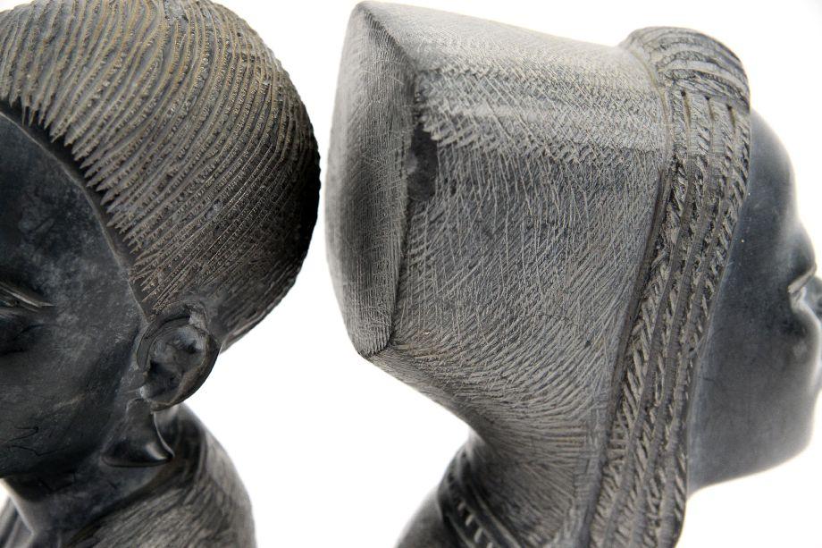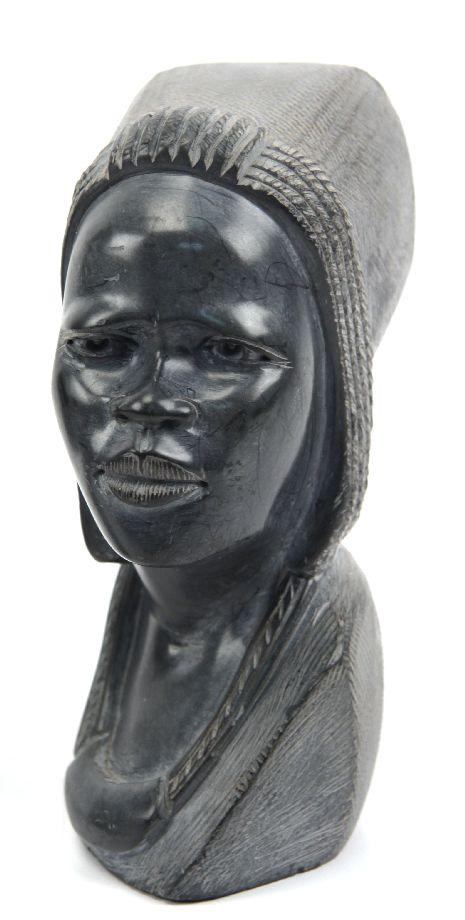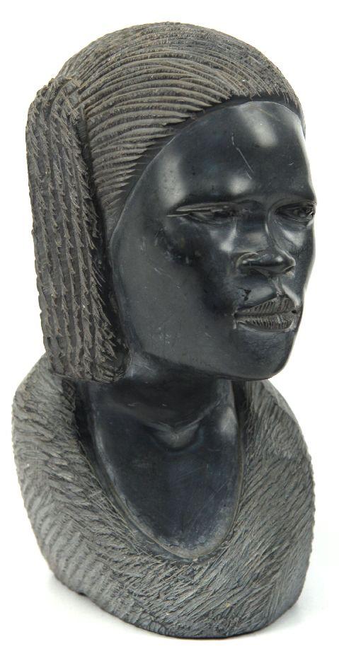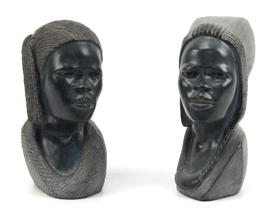 Carved figural African female bust book ends. In good condition one has a chip to the ear and the other has a small chip to the back of the headdress.
