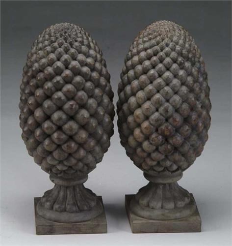 PAIR OF CARVED WOODEN OVER SIZE PINEAPPLE FINIALS. Late 20th Century. SIZE: 23” h. CONDITION: Very good. 9-27950