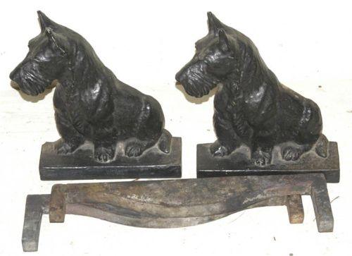 PAIR OF CAST IRON SCOTTY DOG ANDIRONS, 13 3/4" high, early 20th century, weight approx. 100lbs total! CONDITION: excellent, some paint chips. PACKING AND SHIPPING BY FAIRFIELD AUCTION WITHIN CONTINENTAL USA (excluding insurance) $150 due to weight,