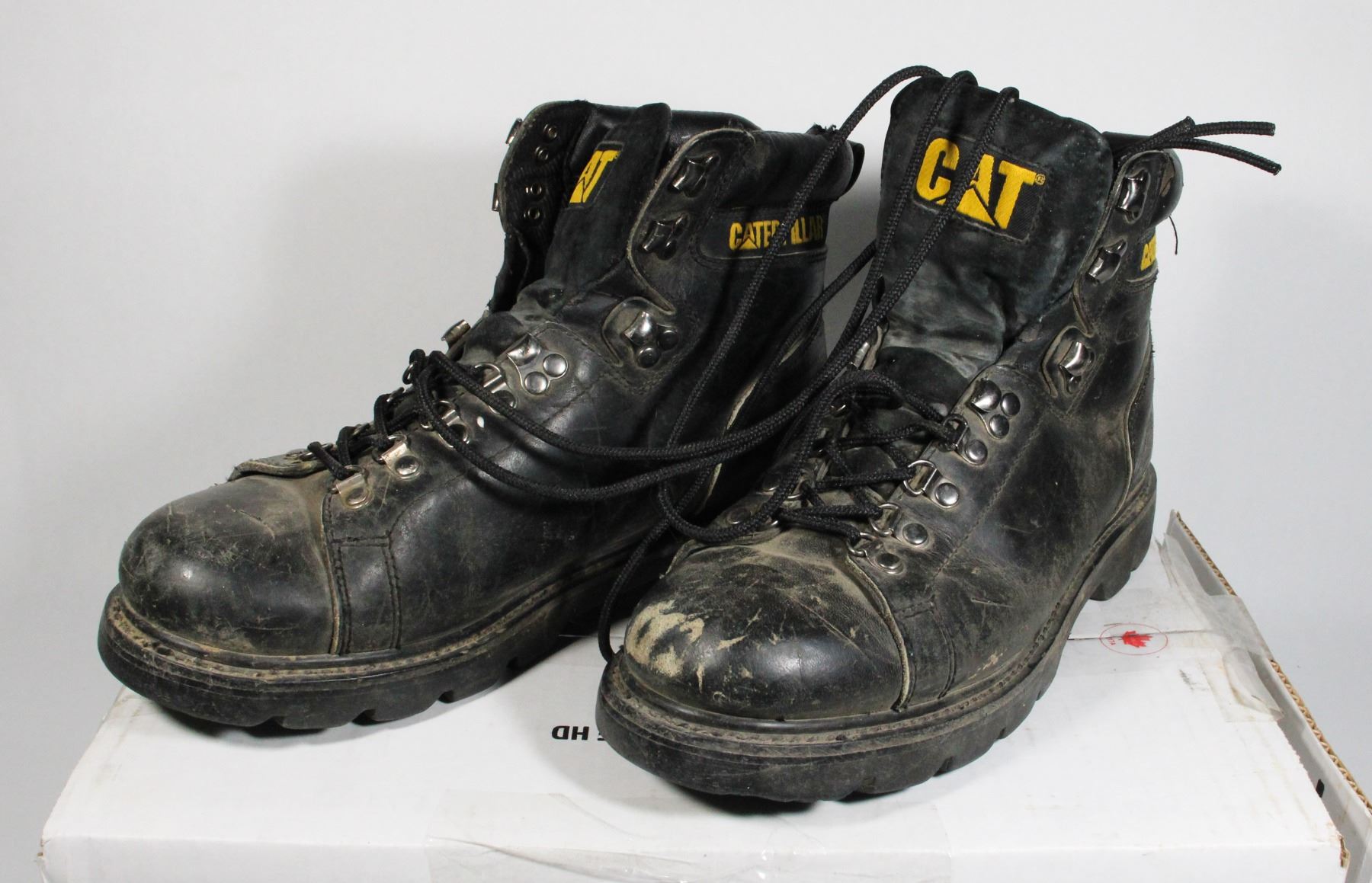 PAIR OF CAT WORK BOOTS. CSA CERTIFIED, SAFETY TOE