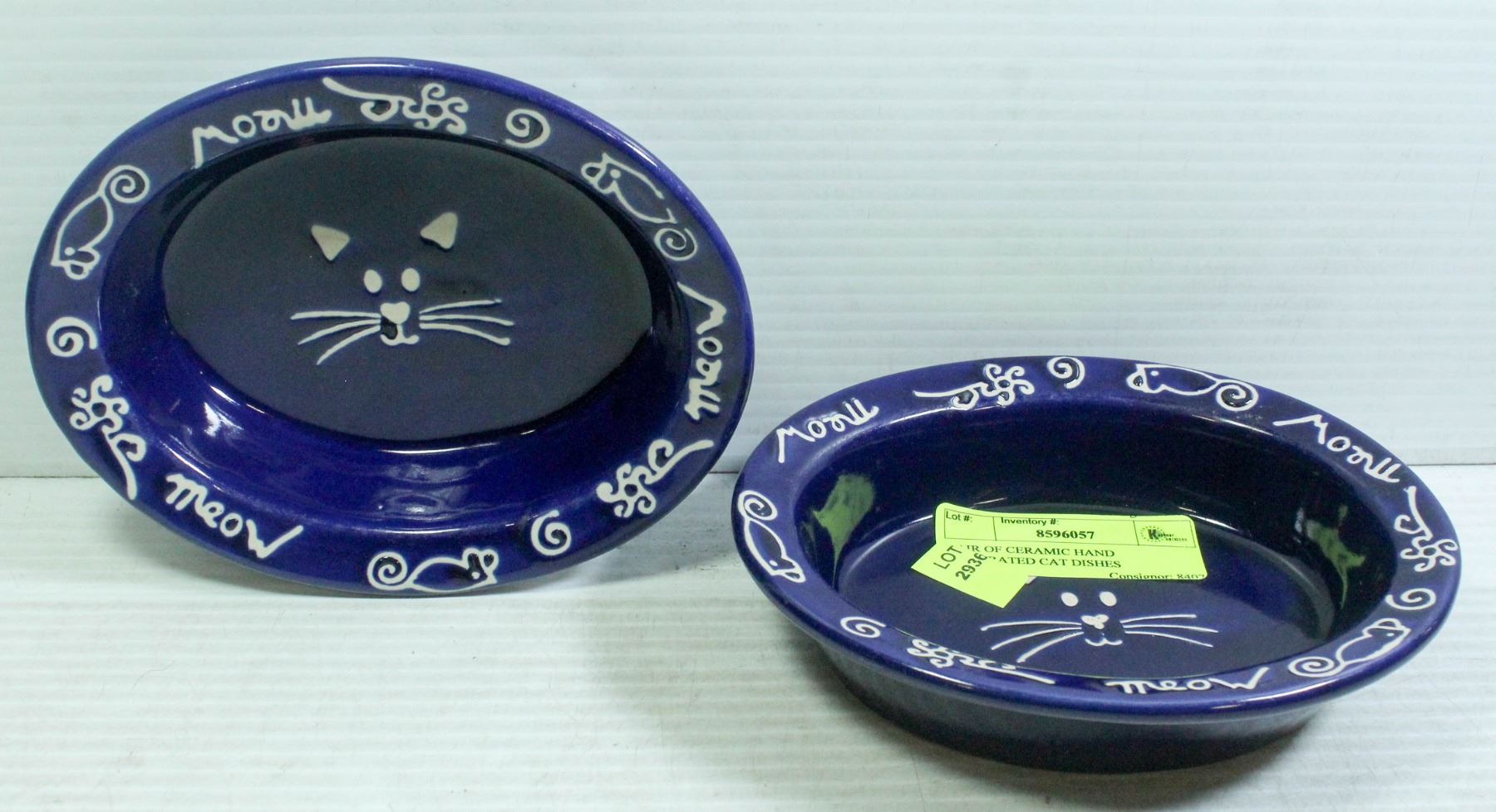 PAIR OF CERAMIC HAND DECORATED CAT DISHES