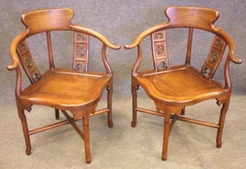 PAIR OF CHINESE TEAK CORNER CHAIRS circa 1940