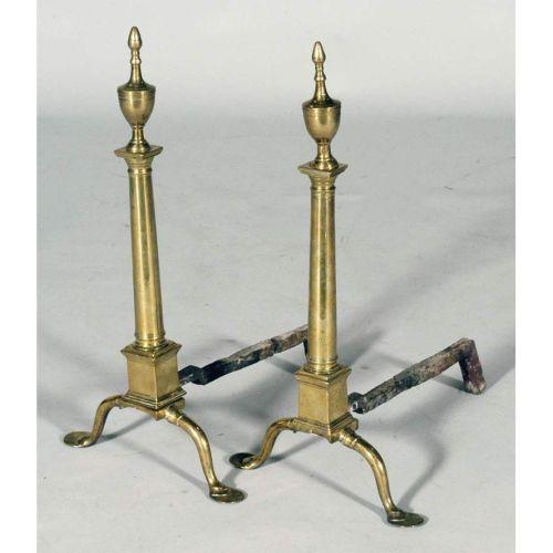 PAIR OF CHIPPENDALE BRASS ANDIRONS Philadelphia, 23 1/2" high late 18th century CONDITION REPORT: no problems.